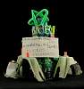 First Place: Taliena Lupinetti for her sleigh with lightbulbs, wire, Styrofoam, fabric, wood, plastic and cardboard. - Second Place: Nickos Spyratos for his "Christmas Tree" with plastic, cardboard, & metal.